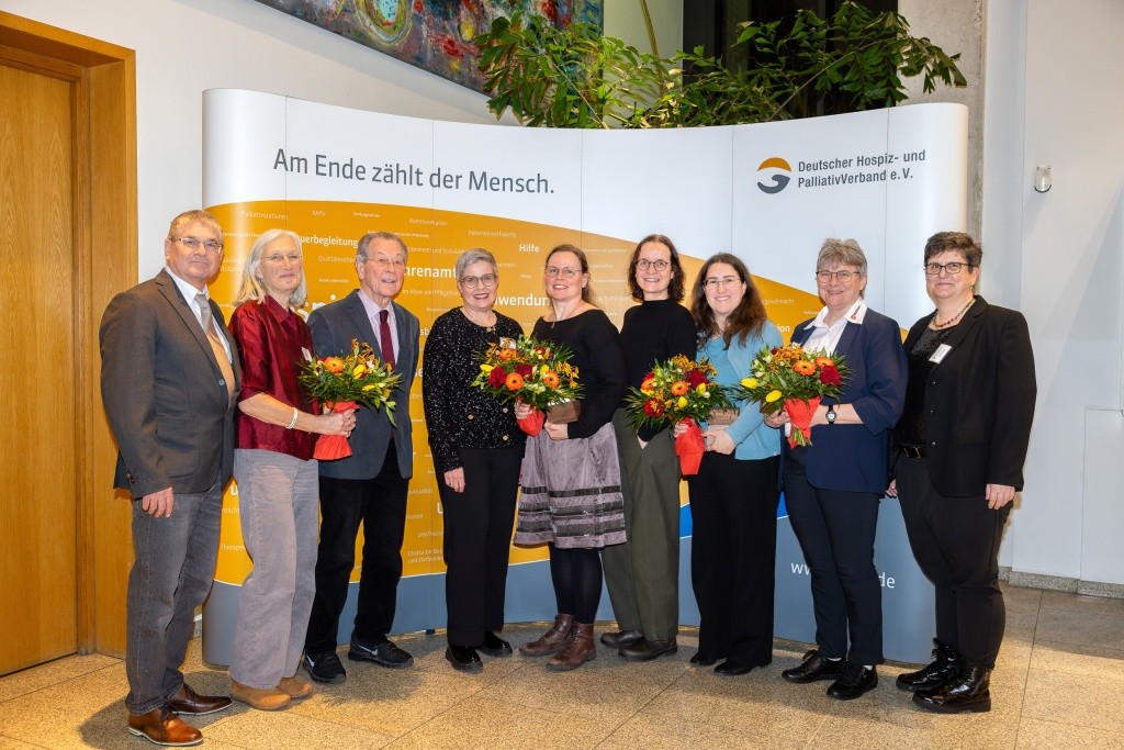 Franz Müntefering, Bundesminister a.D. und ehemaliger Vizekanzler, die ehrenamtlich in der Hospizarbeit Engagierten Annemarie Schurzmann und Ilona Schneider, die Journalistin Martina Keller sowie die Nachwuchswissenschaftlerinnen Stephanie Winter-Below und Sabine H. Krauss wurden im Rahmen des Neujahrsempfangs des Deutschen Hospiz- und PalliativVerbands (DHPV) und seiner Stiftung mit den Ehrenpreisen des DHPV ausgezeichnet.